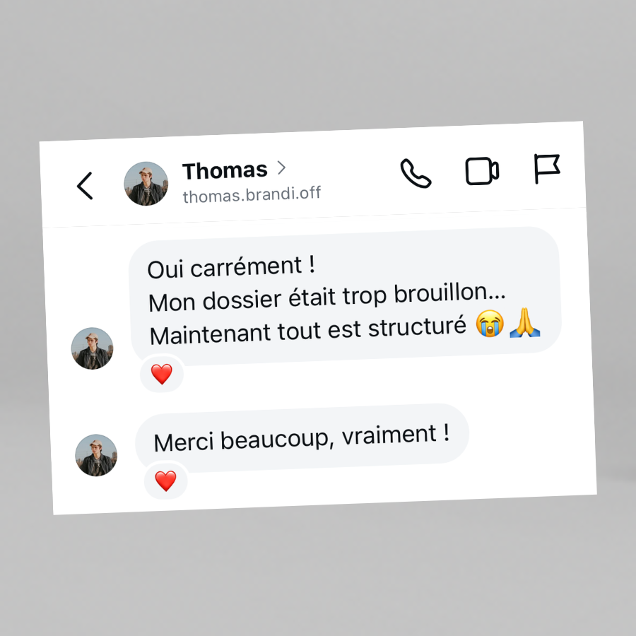 Oui. Une fois rempli, ton dossier sera clair, cohérent et exportable en PDF.